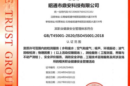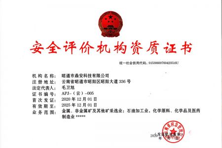 2003年11月10日,昭通市鼎安科技有限公司成立,初始主要從事第三方安全工程技術(shù)服務(wù),經(jīng)多年運(yùn)營(yíng),發(fā)展為多專業(yè)綜合科技平臺(tái),為社會(huì)提供多種專業(yè)技術(shù)服務(wù)工作。 現(xiàn)公司注冊(cè)資金為1200萬元,公司法定代表人:毛衛(wèi)旭。公司主要業(yè)務(wù):安全評(píng)價(jià)、安全標(biāo)準(zhǔn)化評(píng)審、安全工程技術(shù)服務(wù);環(huán)境監(jiān)測(cè)、職業(yè)衛(wèi)生檢測(cè)、檢驗(yàn);法律訴訟及非訴訟服務(wù);司法鑒定、固定資產(chǎn)投資項(xiàng)目節(jié)能服務(wù);工程咨詢;工程測(cè)量測(cè)繪;安全教育培訓(xùn)等。是安全生產(chǎn)服務(wù)、安全教育培訓(xùn)機(jī)構(gòu),也是環(huán)境監(jiān)測(cè)和職業(yè)衛(wèi)生服務(wù)機(jī)構(gòu),同時(shí)也是綜合的檢測(cè)檢驗(yàn)、綜合科技平臺(tái)服務(wù)機(jī)構(gòu)。多年來為公、檢、法、司、軍、警、海關(guān)、仲裁、安監(jiān)、工礦商貿(mào)企業(yè)、社會(huì)團(tuán)體及個(gè)人提供多專業(yè)技術(shù)服務(wù)。